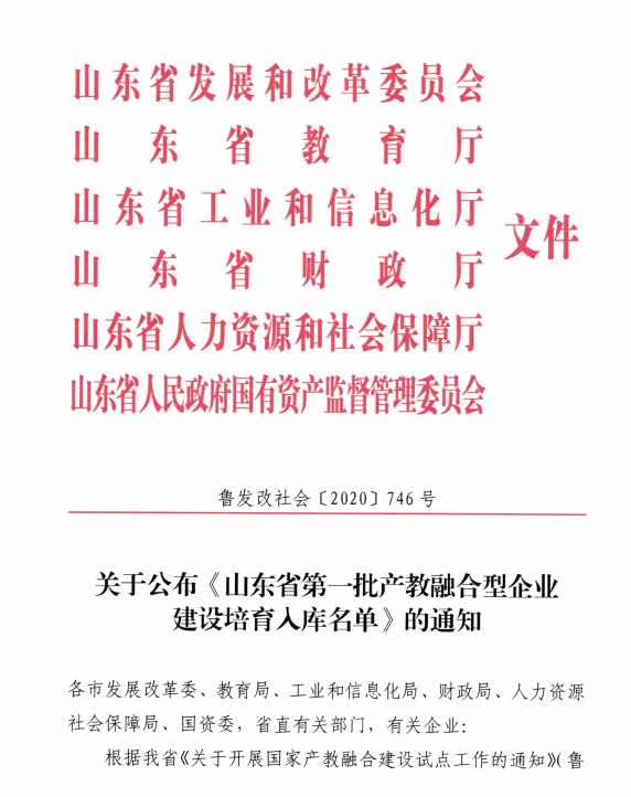 【企業(yè)動態(tài)】德豐重工被列入山東省第一批產(chǎn)教融合型企業(yè)建設(shè)培育入庫名單