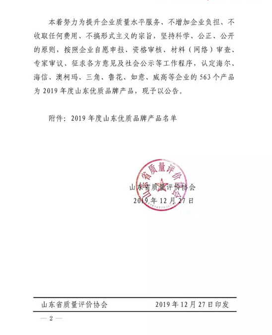 12月27日,山東省質(zhì)量評價協(xié)會發(fā)布了2019年度山東優(yōu)質(zhì)品牌產(chǎn)品和2019年度山東優(yōu)質(zhì)品牌服務的公告名單。山東萌山鋼構工程有限公司的“裝配式鋼管混凝土異形柱鋼結構”榮獲2019年度山東優(yōu)質(zhì)品牌產(chǎn)品!
