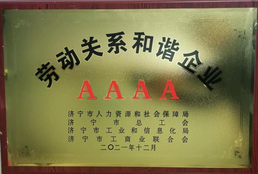 2021年12月20日,濟寧市人力資源和社會保障局、 濟寧市總工會、濟寧市工業(yè)和信息化局、濟寧市工商業(yè)聯(lián)合會聯(lián)合發(fā)布《關于公布第七批濟寧市勞動關系和諧企業(yè)評定結果的通報》,山東德豐重工有限公司榮獲濟寧市AAAA級勞動關系和諧企業(yè)稱號。